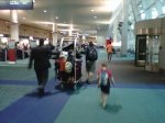 The alarm clock didn’t go off, what a rookie mistake! We only used one alarm clock, we didn’t shower again before we went to bed, we didn’t speed completely recklessly and there (apparently) weren’t enough staff available to help us get our As into G. On the other hand, while we were late, we were still early enough to start the bag-drop process, but the staff at the ticketing counter weren’t super duper helpful to my “business pro” and his family who were late for their flight, so, phuck ’em, we missed our flight. We had great service from the valet guy who ended up helping bag the car seats, but wouldn’t accept our tip. We had great service from the waitress at the cafe afterwards, and we had great service from the people at the airport hotel, but that’s all after the fact. We also had a little lip service from nearly 5yo a few times, just to keep things real. Bah!