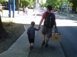 What could we do all day? Driving anywhere – especially home – was out of the question because messing around with car seats can drive a man to drink when there are whiny kids nearby, and same for Mama if she has to shepherd them !away from the car! So we went into town on the train, surely they would love that. And they did, for about 15 minutes, then it was all “why is the train taking so long”. We went to Powell’s, but got waylaid by ankle-biters demanding food, so we went across the road and had everything…and then it was quiet, *sigh*.