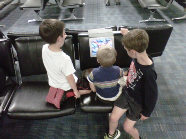 We have ‘deplaned’, and Husband has alarmed me with the notion that we will not make it home tonight. So we are back in the airport.