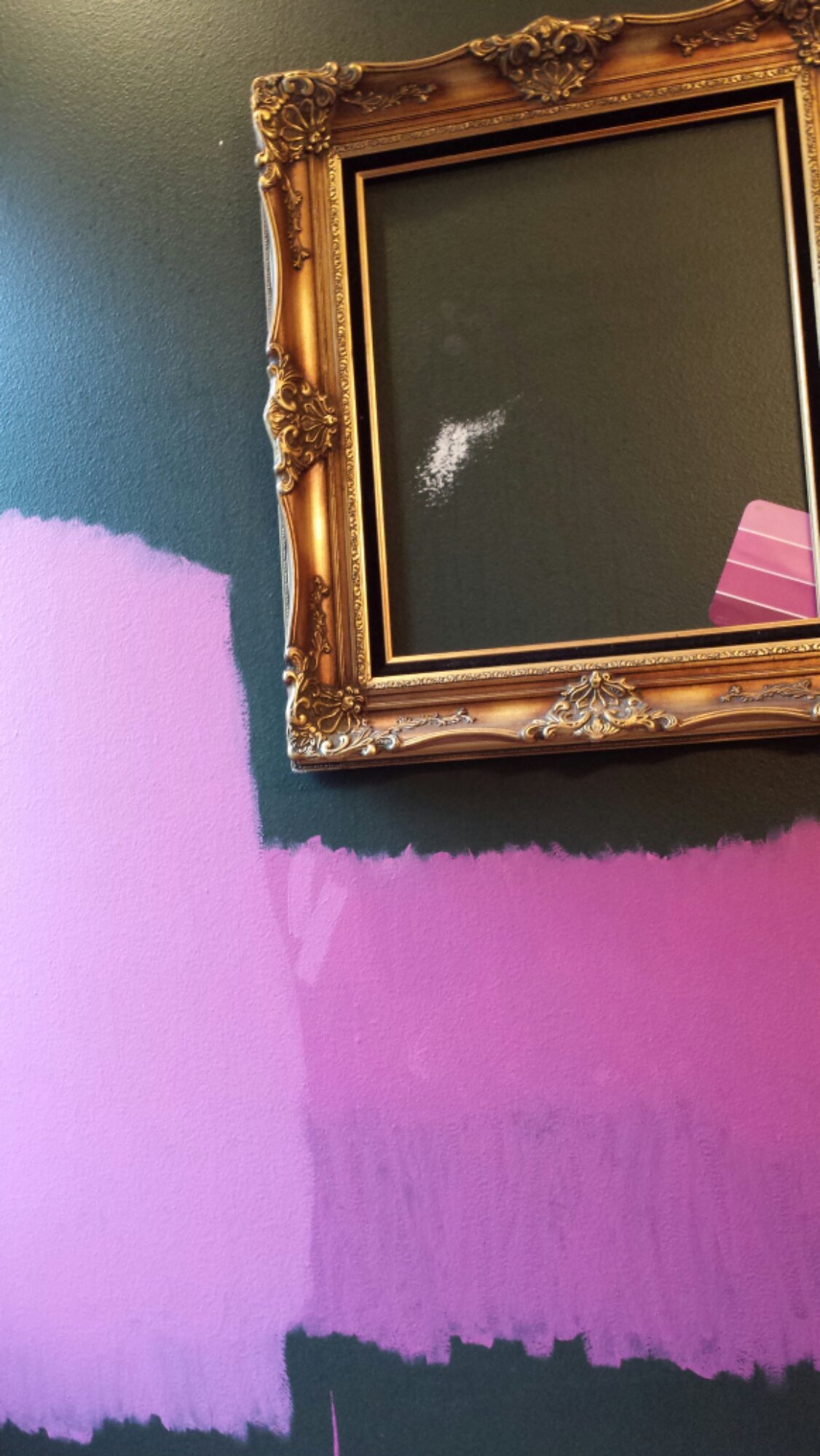 The first attempt, Fuscia Kiss, was too barbie for Husband; that was when he told me he didn’t like the idea of a pink bathroom. In a house full of dudes, I have done very well to decorate the house with (what I think is) good taste sans girly frills, so we can all suffer a pink bathroom, I think, i.e. bad luck. The 2nd attempt, Exotic Bloom, was quite a bold shade, but again, too pink. Today I tried to veer to the purple side with the 3rd shade, Orchid Kiss, but it seems a muted pink again, there on the left. So the winner is there on the right hand side, Exotic Bloom. In comparison to the kisses, it is the right shade of boldness combined with the right amount of pizazz, and that is exactly what our house needs, as we feel it lacks character.