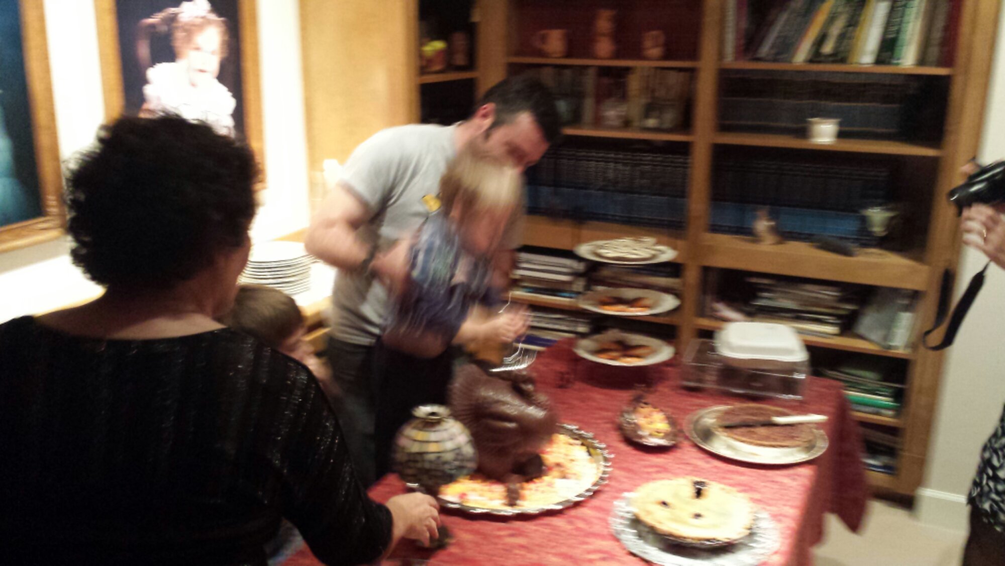 We have our own turkey for lunch after walking around all morning in our pajamas, and frantically scaring up vegetables for the impending lunch. After naps, we head to a friend’s house for more turkey and fellowship.