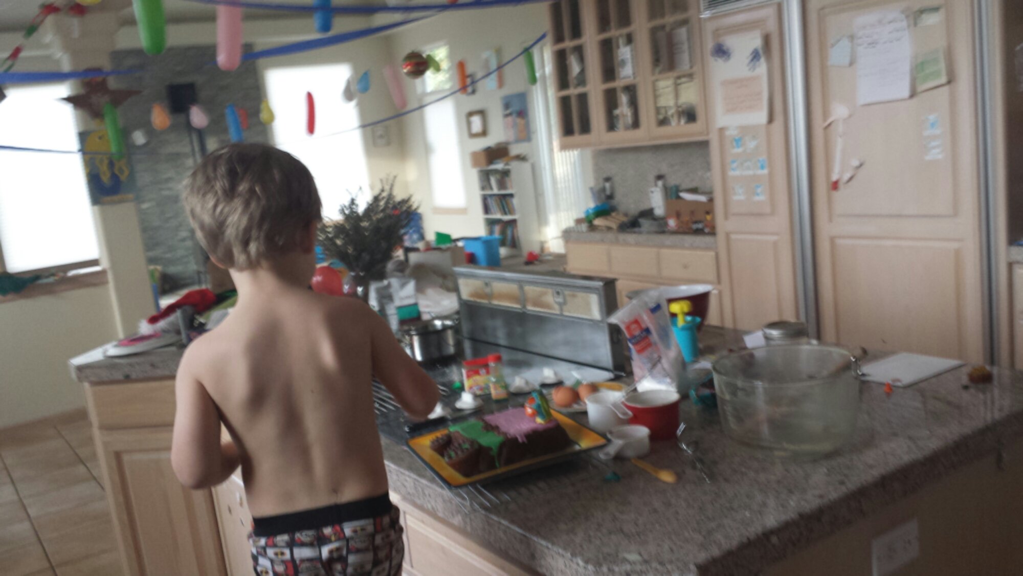 We managed to catch his friends by text message before they left, or perhaps not and they were too polite to say so. We watched him the next little while but he was as chipper as ever with no signs of anything more. He had a great time when his big friends came over, and the cake did not go to waste, nor see much daylight after the candles were blown out.