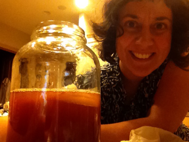 So now the cheesecloth is back on and back into the pantry it went. Hopefully I will remember to check out the scobyaroo when we come back from our little vacation, and the juicy juice might be fizzy and ready for flavouring. But not with cranberry.