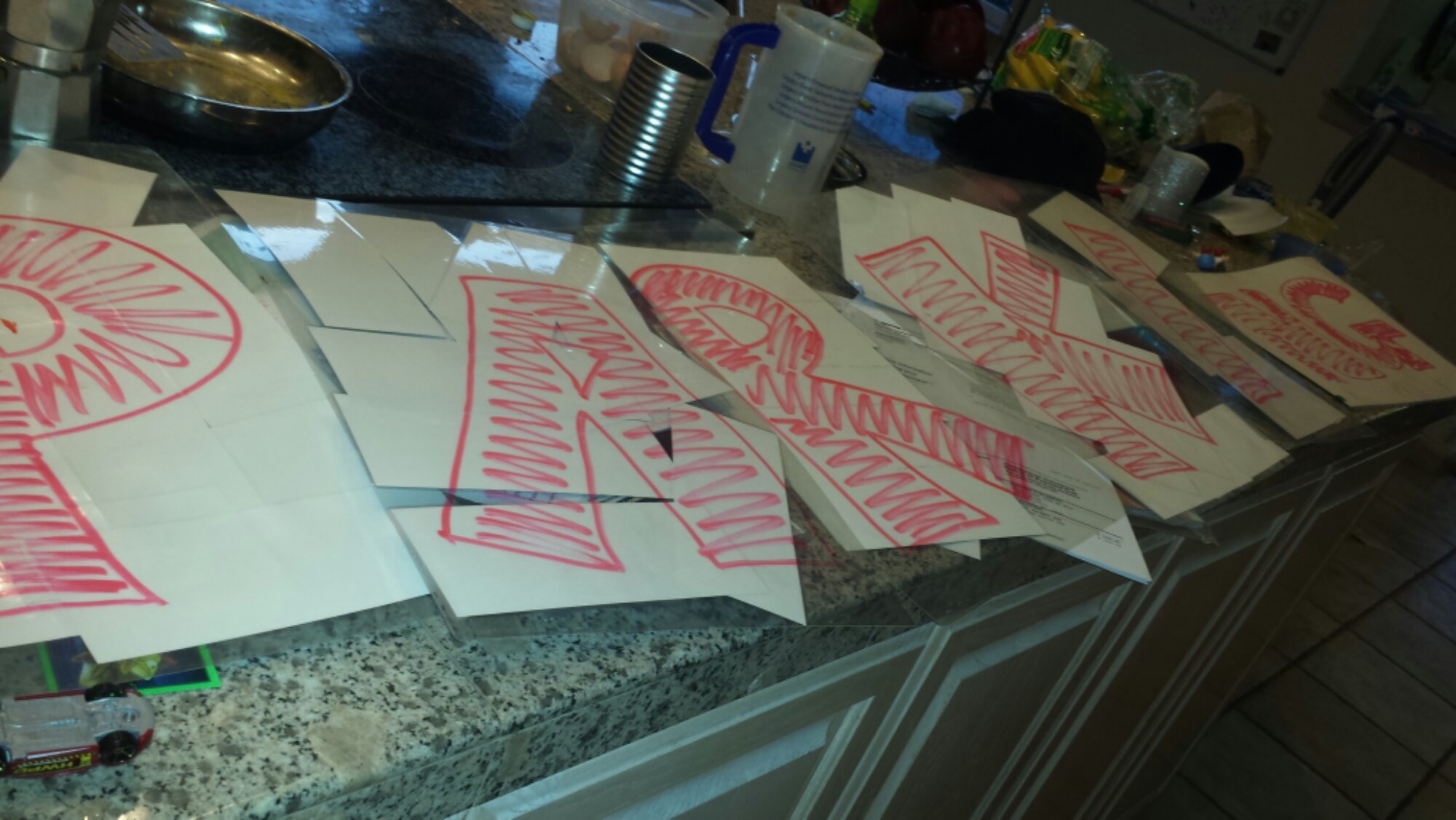 I was wondering how to organise all the cars, and know we will need some sort of hanging sign. I hope double-sided tape will work on the siding, that is what I plan on using to hold up the old Christmas photos I had laminated for use as placemats. I have drawn large letters on the back of them in white-board marker, and that is the best use for them since they were made, as we never really used placemats. I have always found it easier just to wipe the table down after (ahem) every meal.