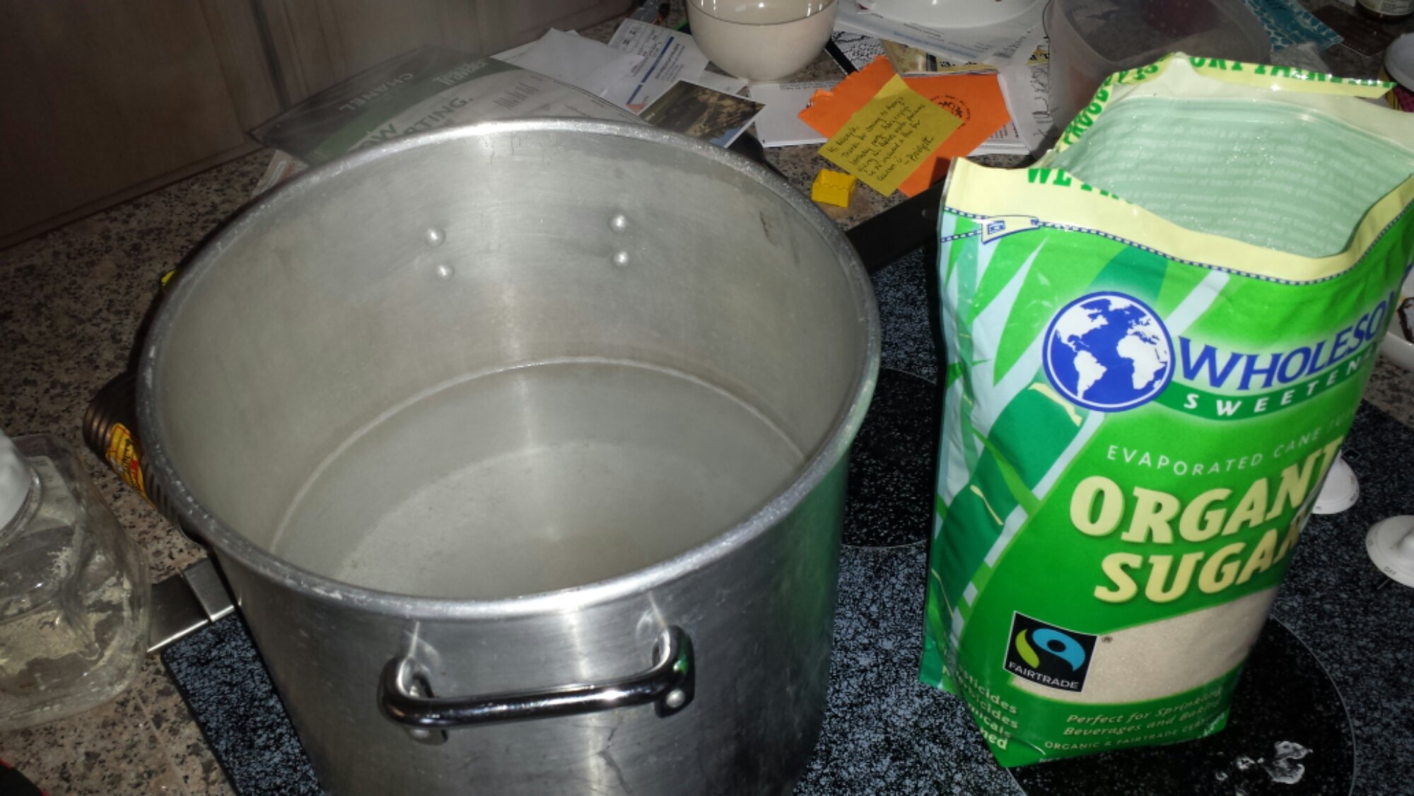 So it should be dinner time but I’ve started the fixings for the rock candy. And it’s basically sugar and water, and lots of it. I grew up on metric so the whole imperial pounds and ounces is still some sort of crazy bullshit to me, which is why I came up with needing 23.3lbs of sugar, which is stupid. So I will recalculate… well, that seems to be about right actually, which is even more stupid, and a shame because I only have just under 10lbs of sugar, and that will have to do.