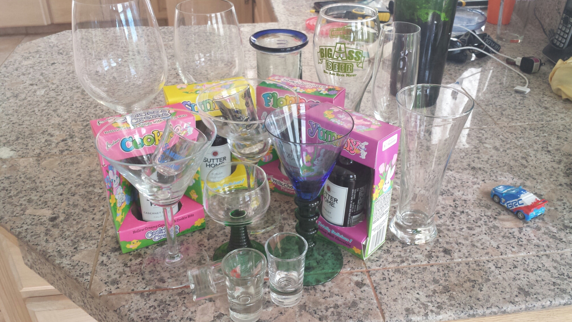 During all the cute pinterest ideas on facebook and banter about junkfood, I saw a picture from some enterprising parent about an egg hunt for adults, comprised of plastic eggs containing liquor. Hell-LOOOO!