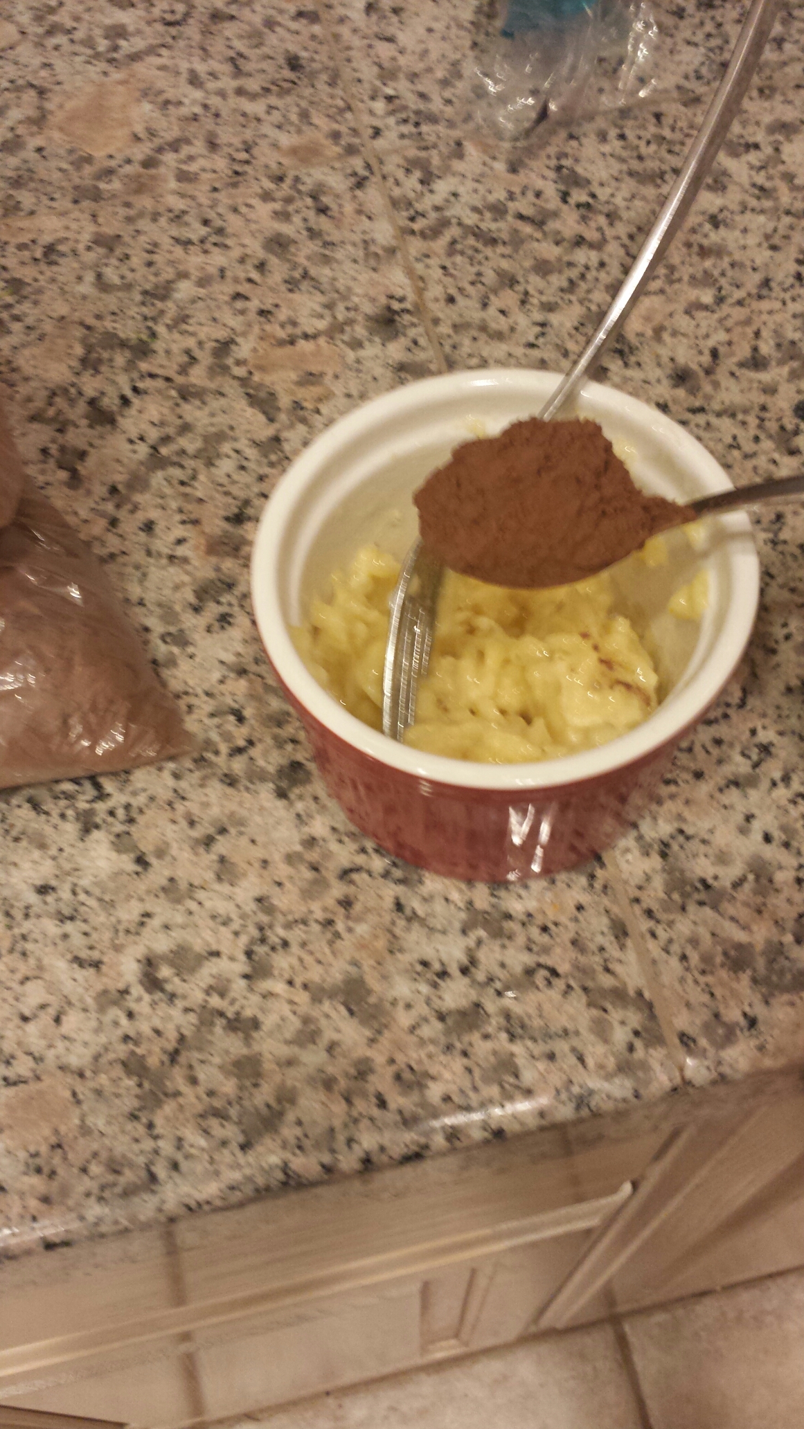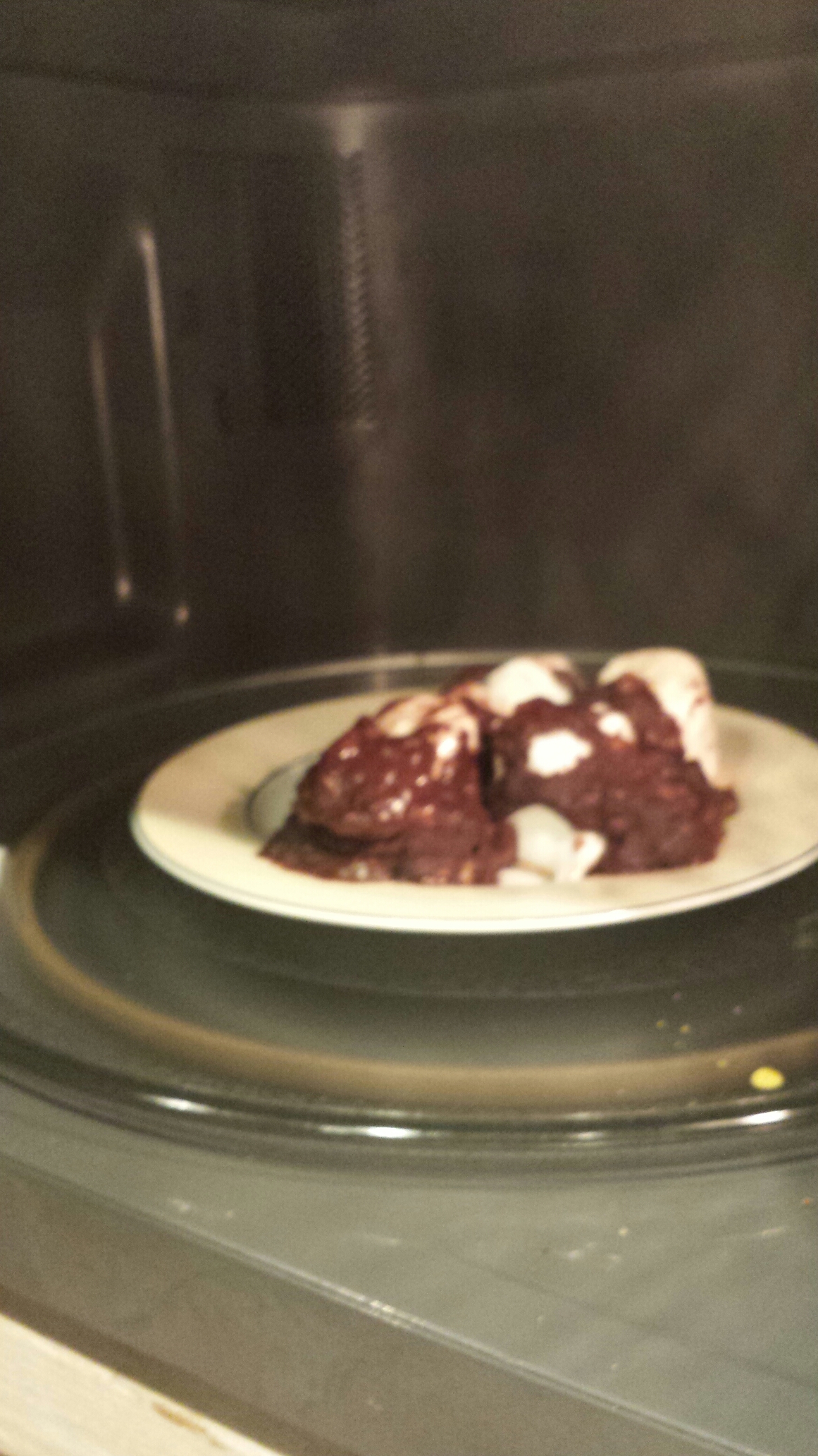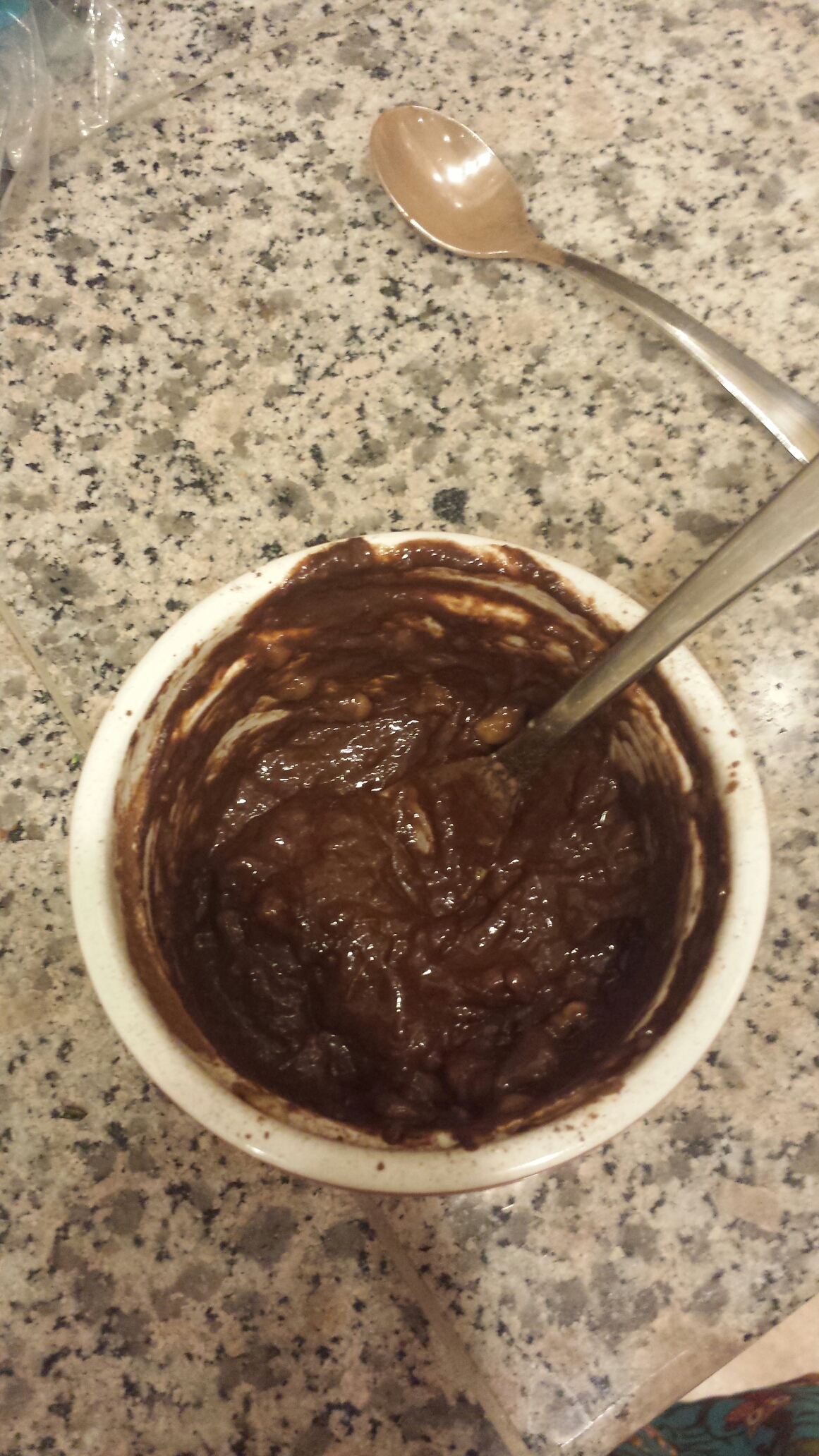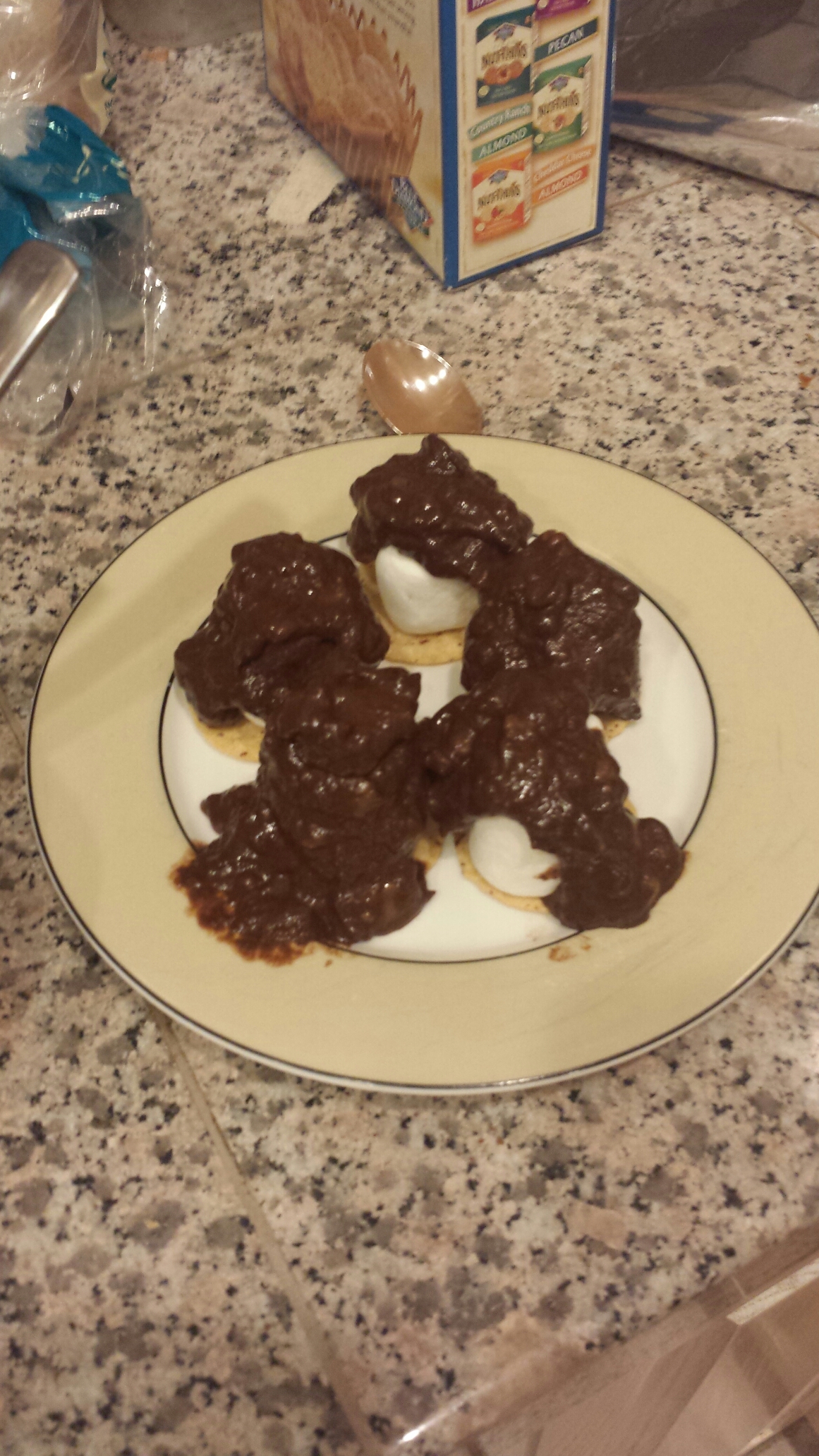 Tonight, the boys and I watched the Gene Wilder version of Charlie and the Chocolate Factory, or Wonka or whatever, and it was all I could do not to talk about how much I wanted chocolate and candy and all sorts of melty, sweety, rubbishy goodness. But now the boys are in bed, and I am free to pine aloud. Because we have none of that here. Woe! So I’m attempting to make some sort of half-assed chocolatey satisfaction by mixing banana and cacao powder, heating, adding marshmallow and crackers. At the very least, it will keep me busy enough until I give up and go to bed if I don’t actually like it.