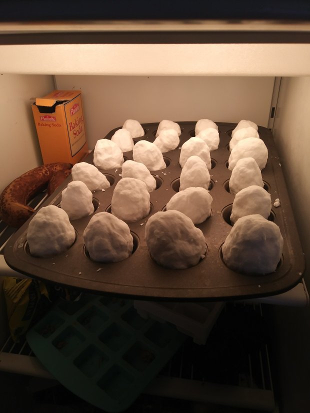 When I was happy with the final result, I lined them up, all pretty like, and forgot about them for three days and then popped them bitches in the oven for the recommended half hour or so, at 400F or so. The thing to remember is to put them in before heating up the oven, and take them out after it has cooled.