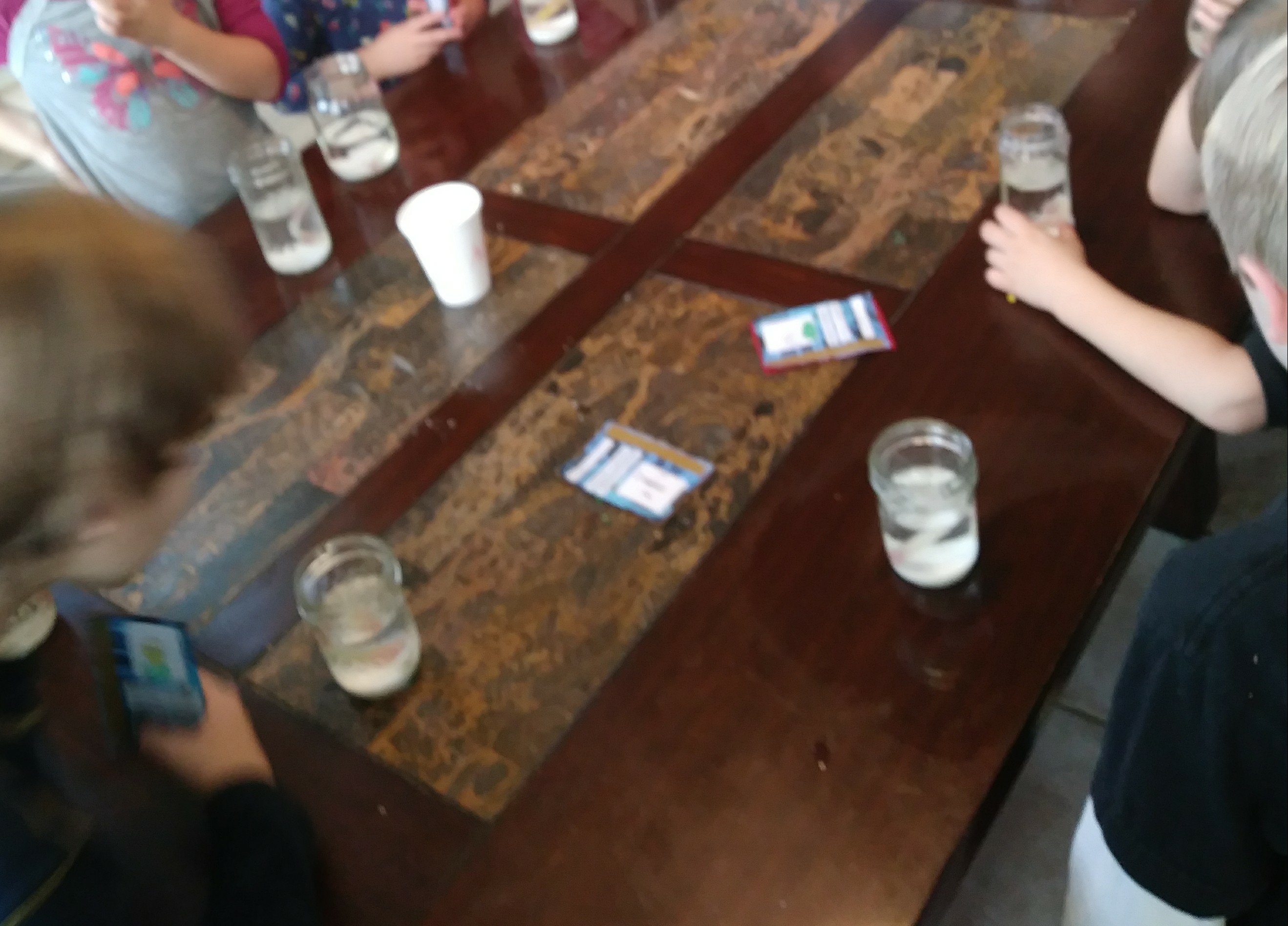 They tried the gummy worm experiment, too. I didn’t do it quite right but the kids got a kick out of the soda overflowing, exactly like the vinegar volcanos and there were bubbles all over the worms so, a bit of excitement.