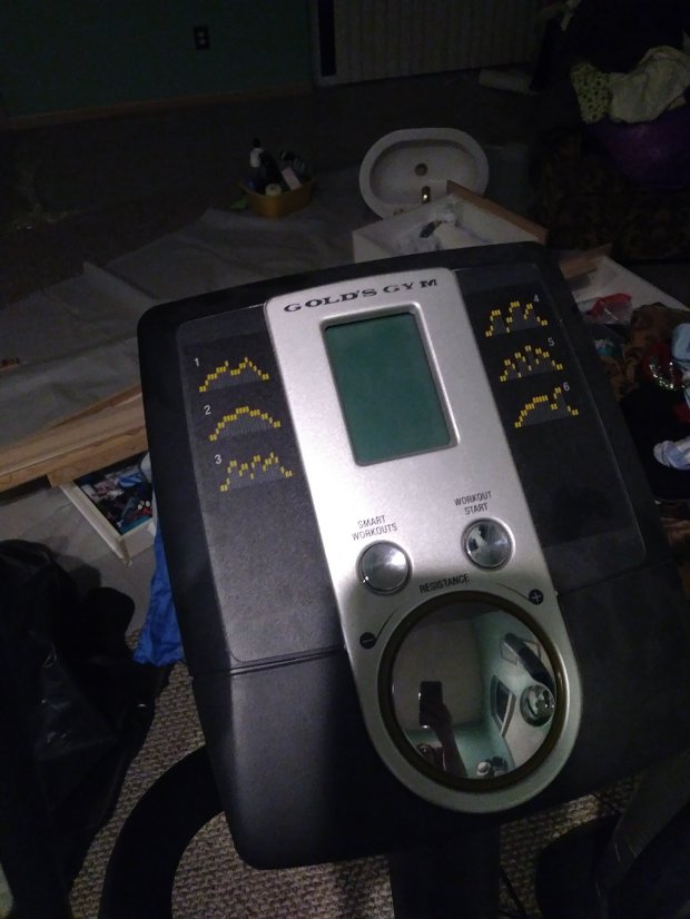 Well, friends and countrymen, I did something radical and I may or may not be pressed for a secret password to prove that I am, in fact, really and truly me. I bought an electric cord for the elliptical that has been a clothes rack in the bedroom for the past 4 or so years, and it is a full-time coat hanger no more! Merely part-time, from now on. That’s the plan, anyway.