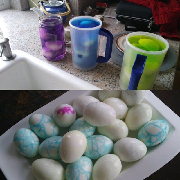 We dined on snacks and also these cool boiled eggs, made by breaking the shell and resting in food coloring until go-time.