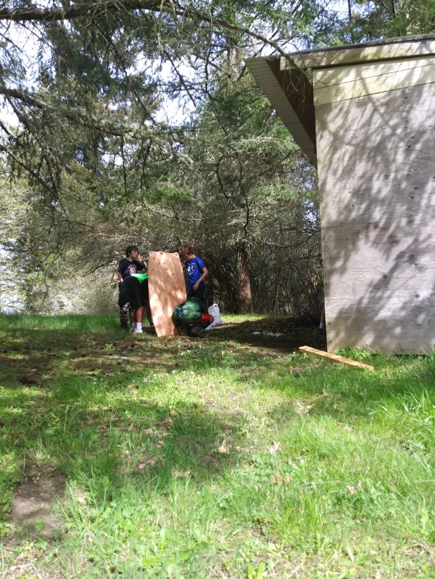Our yard is on a hill, so the plan is to hide stuff along the way down the hill, including potions, gold, string, power ups and wooden planks. Husband eventually cut the pieces for the crafting table, so, let’s see how that goes.