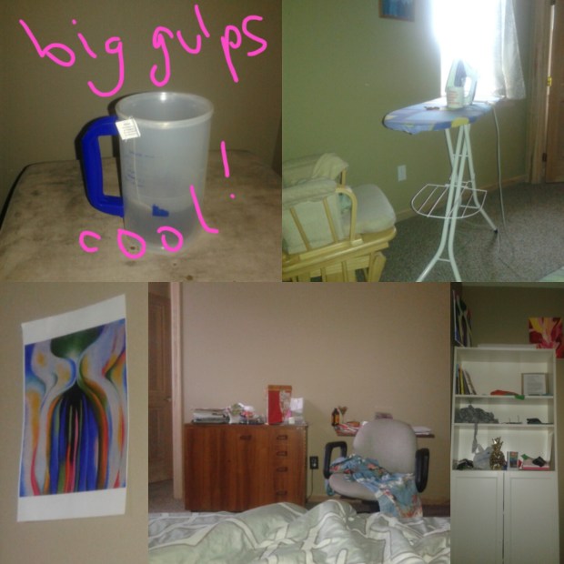 This morning I have woken up in 2004, in a studio apartment. Last night I slept in my HQ, which is a spare bedroom upstairs where I have my sewing stuff and a too-small table to spread out my notes and papers.