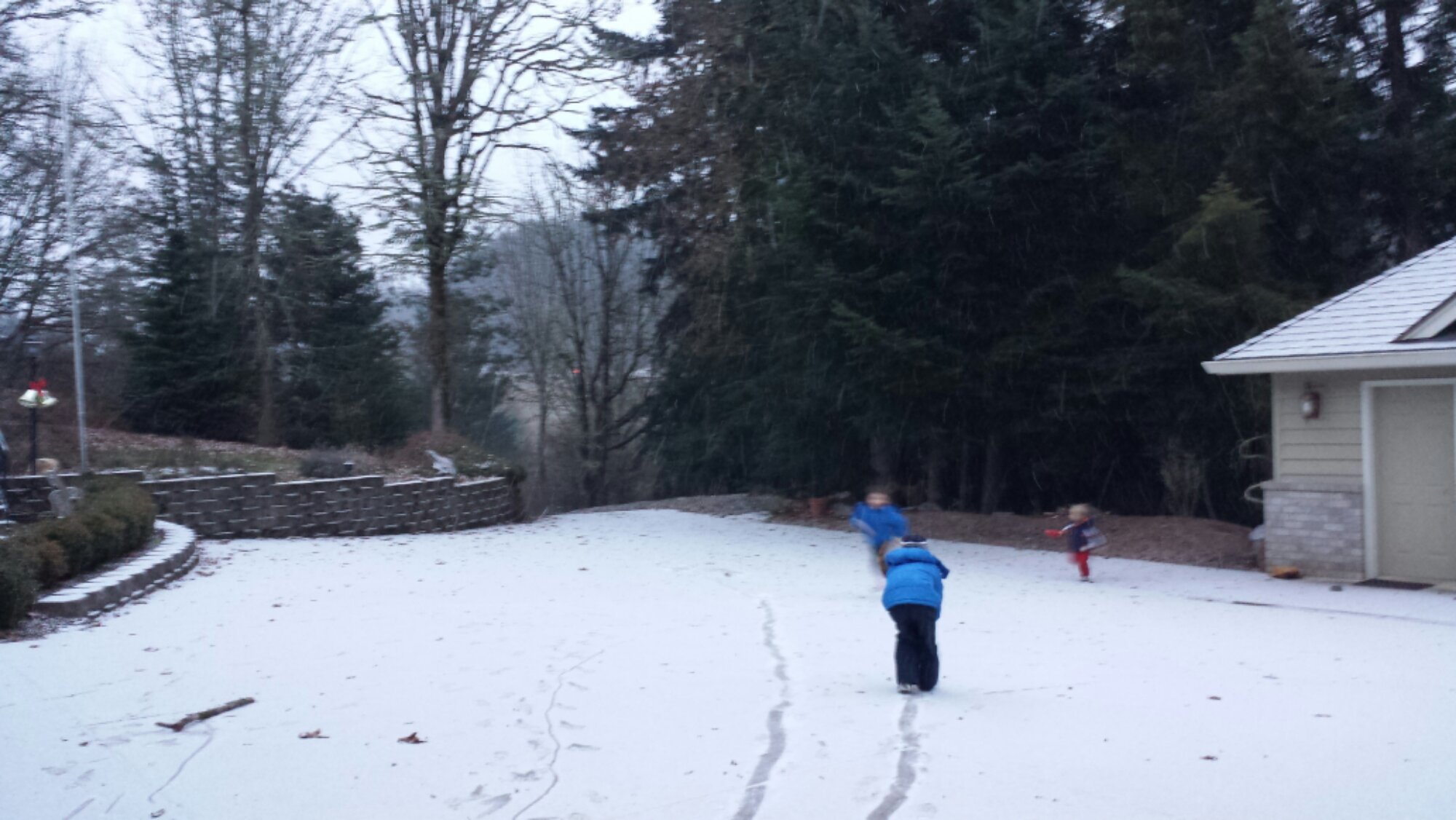 There were no injuries, even though the boys were sledding head first into snow-covered rocks, so the first aid kits remain mostly unused. There were no road accidents on our street, though dudes on 4 wheelers pulling dudes on sleds at high speed went up and back numerous times. There were no marauders – always a relief – and there were no asteroids falling through the atmosphere. No bleeding from the eyes or swarms of locusts (maybe they fot frozen), no pillaging of Fred Meyer. So all in all, a pretty piss poor end of the world.