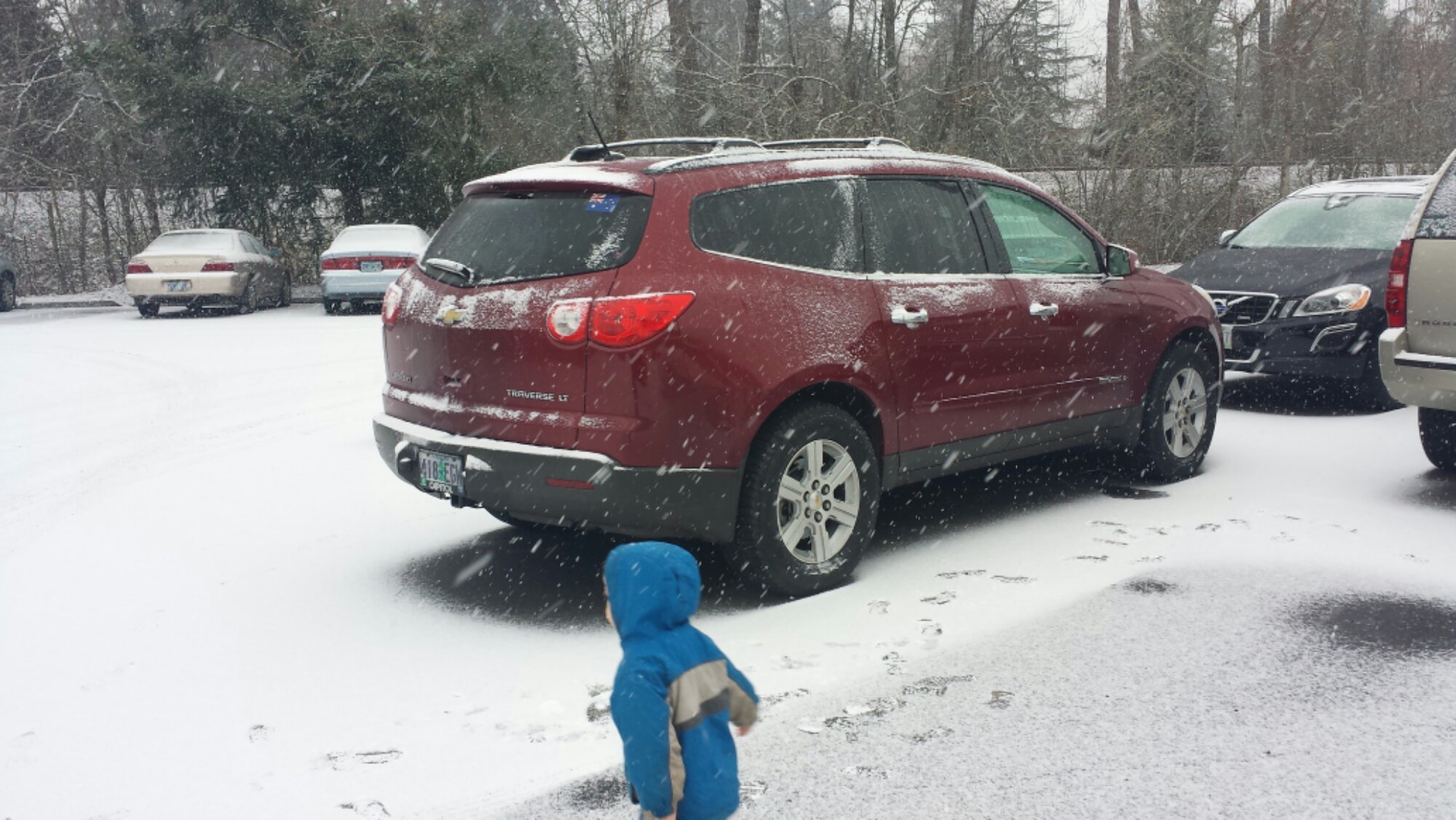 The boys all had a short play in the snow before school drop-off, and wanted to play again in the carpark