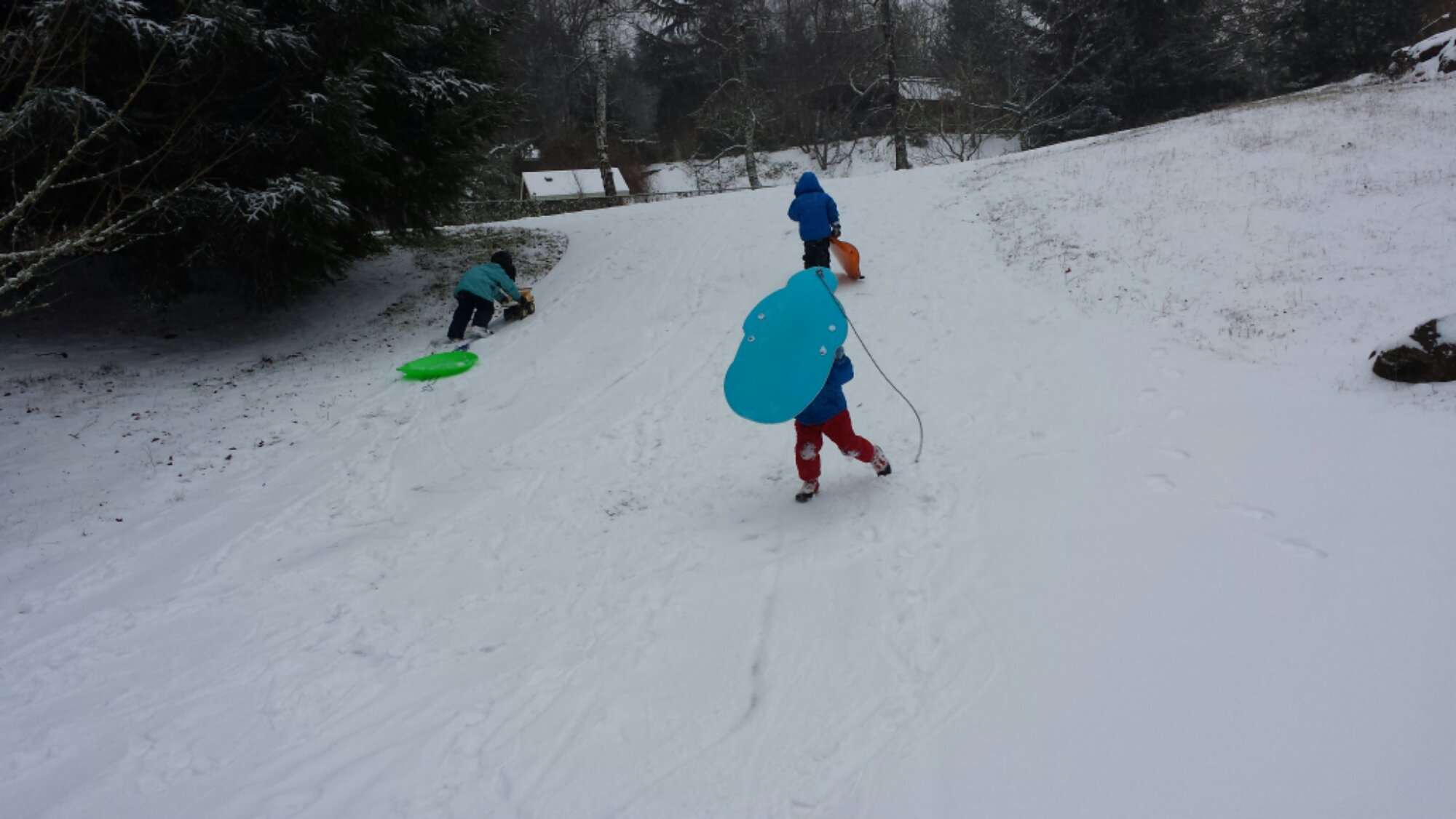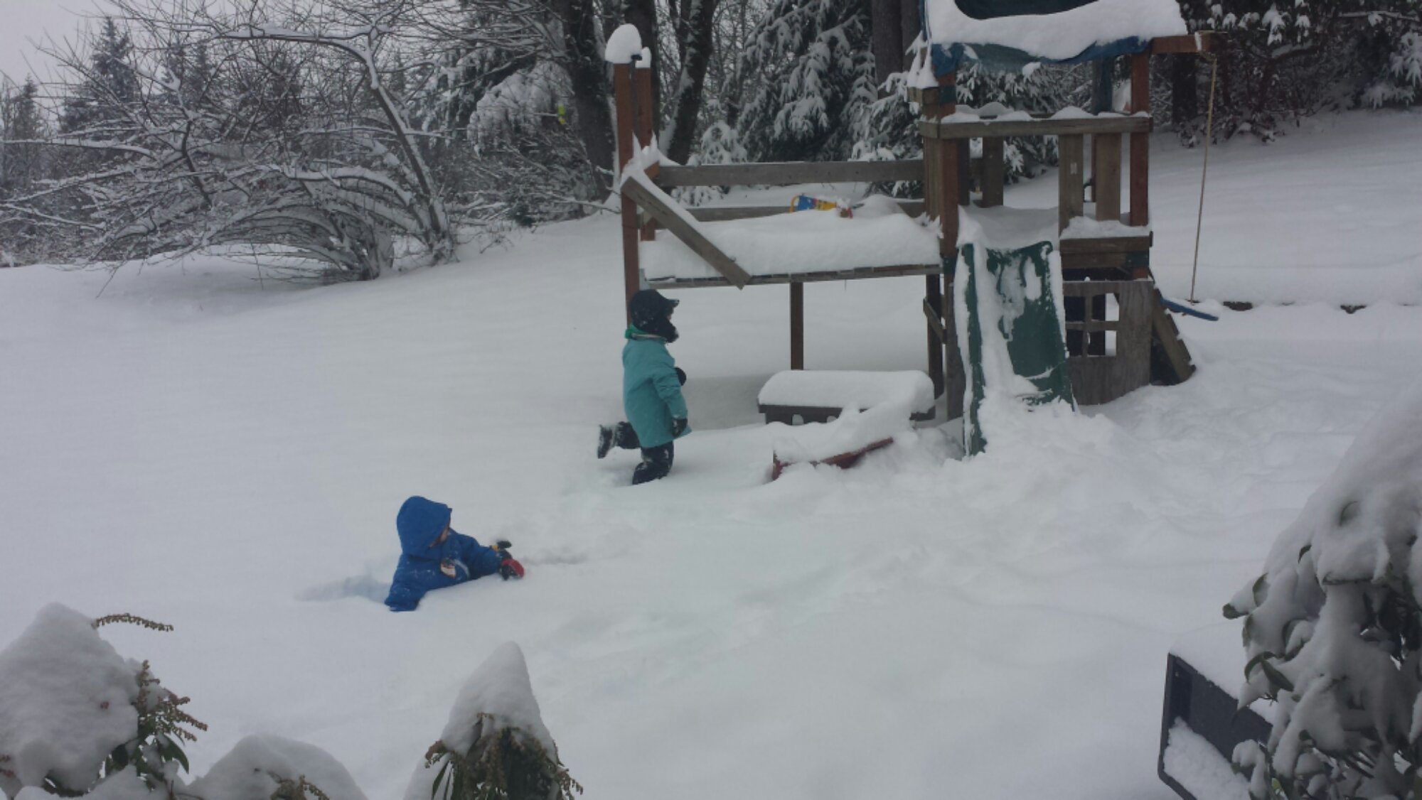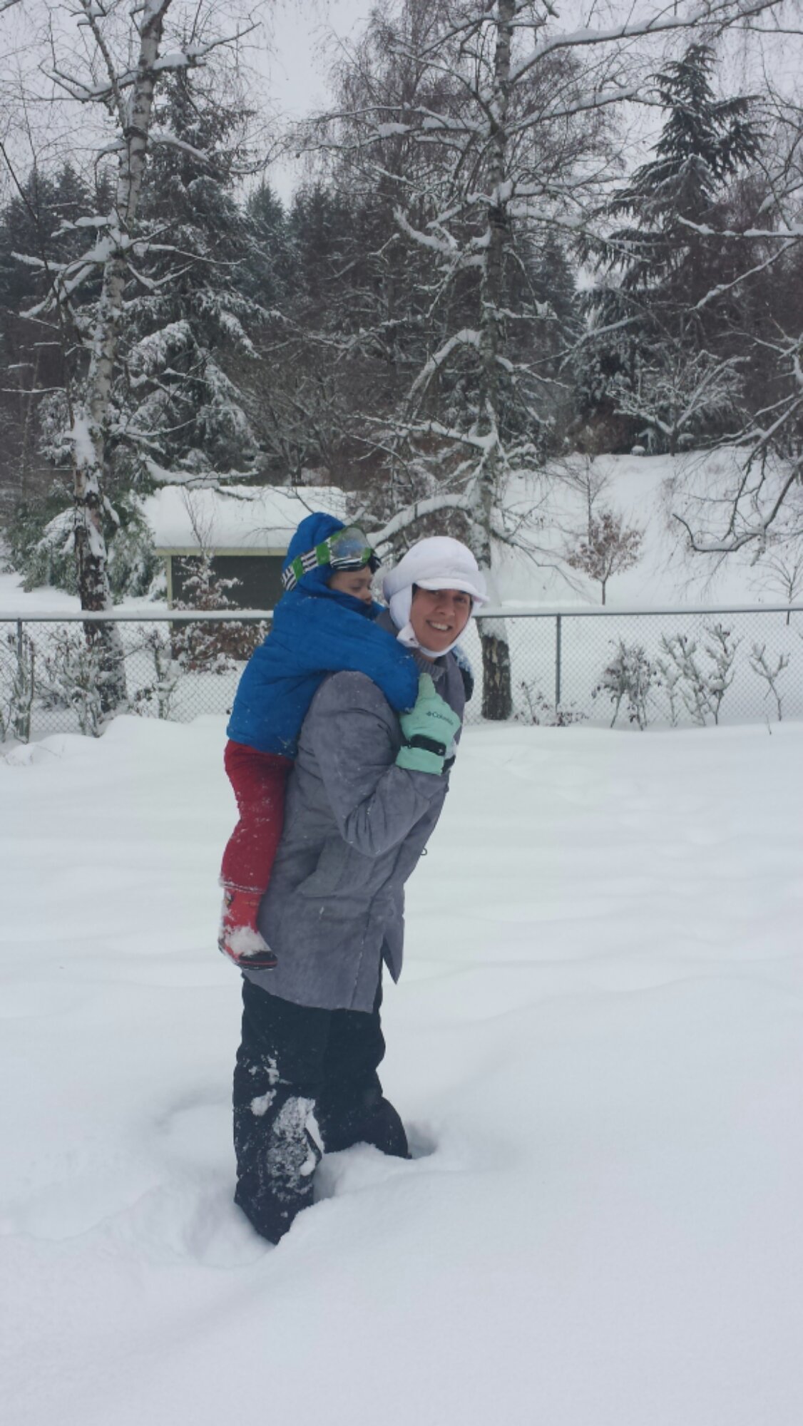 The boys spent too long inside, annoying each other and watching lego game out-take movies waiting for the power to go out, but it didn’t go out, so they kept wanting to watch more instead of going outside to play in the white wonder that is usually so scarce. Eventually I changed out of my pajamas which signalled the end of indoor slouchery; everyone put on snow clothes and went outside to sled and whine about the cold.