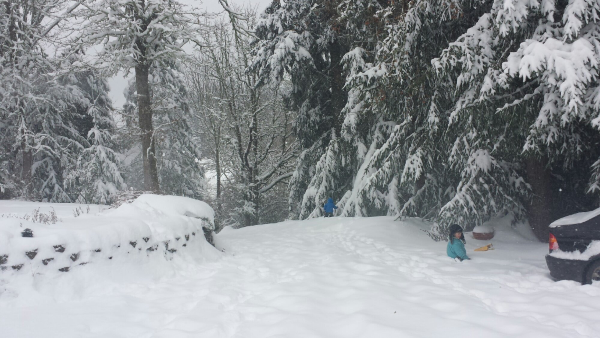 Because snow is apparently the end of the world, we were preparing for it. Husband charged batteries for the flashlights, the leapsters, phones, ipad, laptop, but not the car that has the chains. He reloaded my car with dry firewood from the barn and moved the outdoor pile into the garage, and then checked petrol levels in the jerry cans.